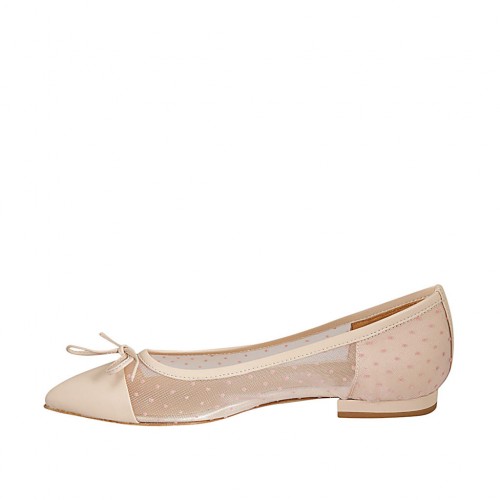 Bailarina Puntiaguda Para Mujer Con Mono En Tela De Lunares Transparente Y Piel Color Desnudo Tacon 1