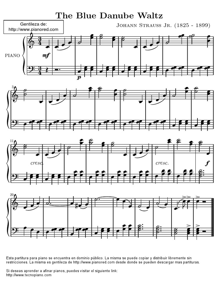 Tubescore Danubio Azul By Johann Strauss Easy Piano Sheet Music