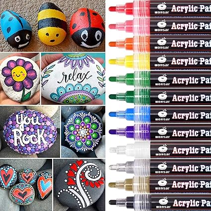 Rotuladores De Pintura Acrilica Para Piedras Permanente Marcadores Dibujar En Piedras Vaso Ceramico Porcelana Plastico Madera Papel Lona 12 Punta Mediana Amazon Es Hogar