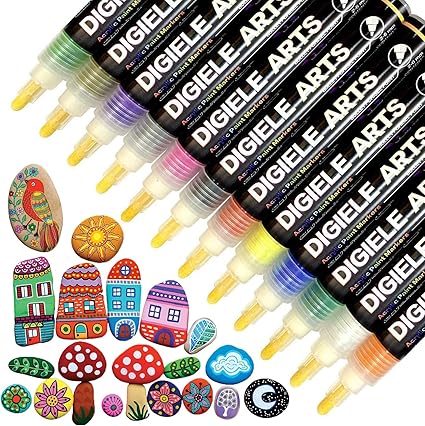 Rotuladores De Pintura Acrilico Para Piedras Digiele 12 Colores Permanente Marcadores Dibujar En Ceramica Metal Plastico Porcelana Tazas Diy Art Set De Marcadores De Regalo Para Ninos Amazon Es Oficina Y Papeleria