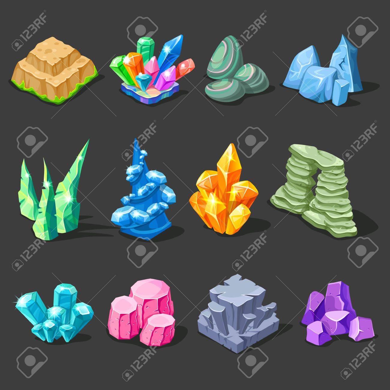 Conjunto De Piedras De Color De Dibujos Animados Para Su Uso En El Juego Y La Animacion Ilustraciones Vectoriales Clip Art Vectorizado Libre De Derechos Image