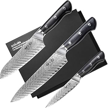 Amazon Com Sixilang Damascus Kitchen Knife Set 3 Piece 67 Layer Handmade Japanese Aus10 Steel Core Forged Chef Knife Japanese Santoku Knife Utility Knife High End Professional Kitchen Knives Kitchen Dining