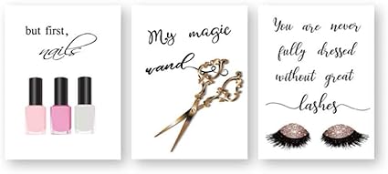 Hmotr Carteles Esmaltes De Unas Pestanas Impresiones Lienzo Pintura Cuadros De Pared Para Nina Senora Vestidor Salon Decoracion De Arte 40x50cmx3pcs No Frame Amazon Es Hogar
