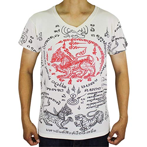 Work Thai Tattoo Sak Yant Tiger Muay Thai Amulet T Shirt White Wk06 Size Xl Amazon Com