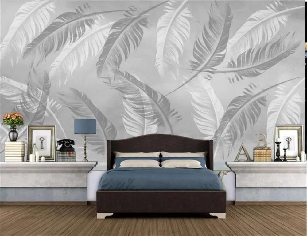 Buena Calidad Y Bajo Precio 3d Papel Pintado Luz De Lujo Moderno Estilo Nordico Fondo De Pluma Blanca Decoracion De Pared Practica Papeles Pintados Aliexpress