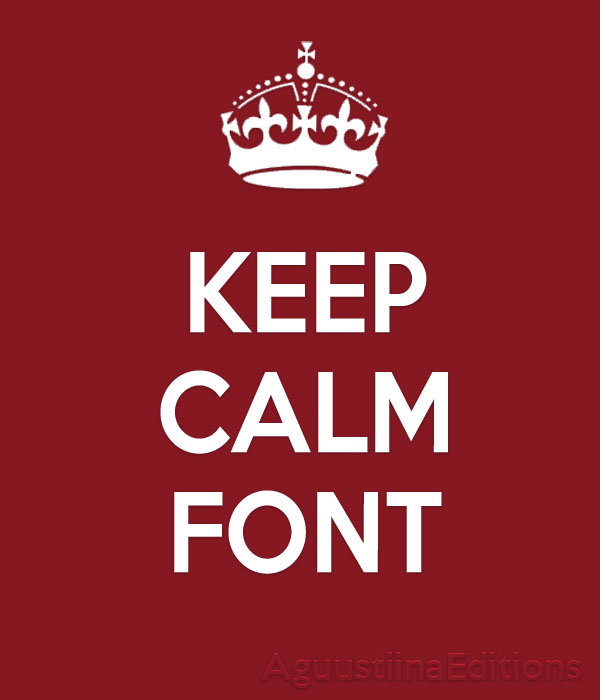 Keep Calm is a family of fonts developed from the now famous World War 2 poster that was designed in 1939 but never issued, then rediscovered in 00 As well as the original Keep Calm font, the Medium weight of the poster which can be downloaded free for personal use, three new weights are available from KType – Book (regular), Heavy and. Keep Calm is a family of fonts developed from the now famous World War 2 poster that was designed in 1939 but never issued, then rediscovered in 00. Keep Calm is a family of fonts developed from the now famous World War 2 poster that was designed in 1939 but never issued, then rediscovered in 00 As well as the original Keep Calm font, the Medium weight of the poster, three new weights are available – Book (regular), Heavy and Light – and each comes with a complimentary Italic.