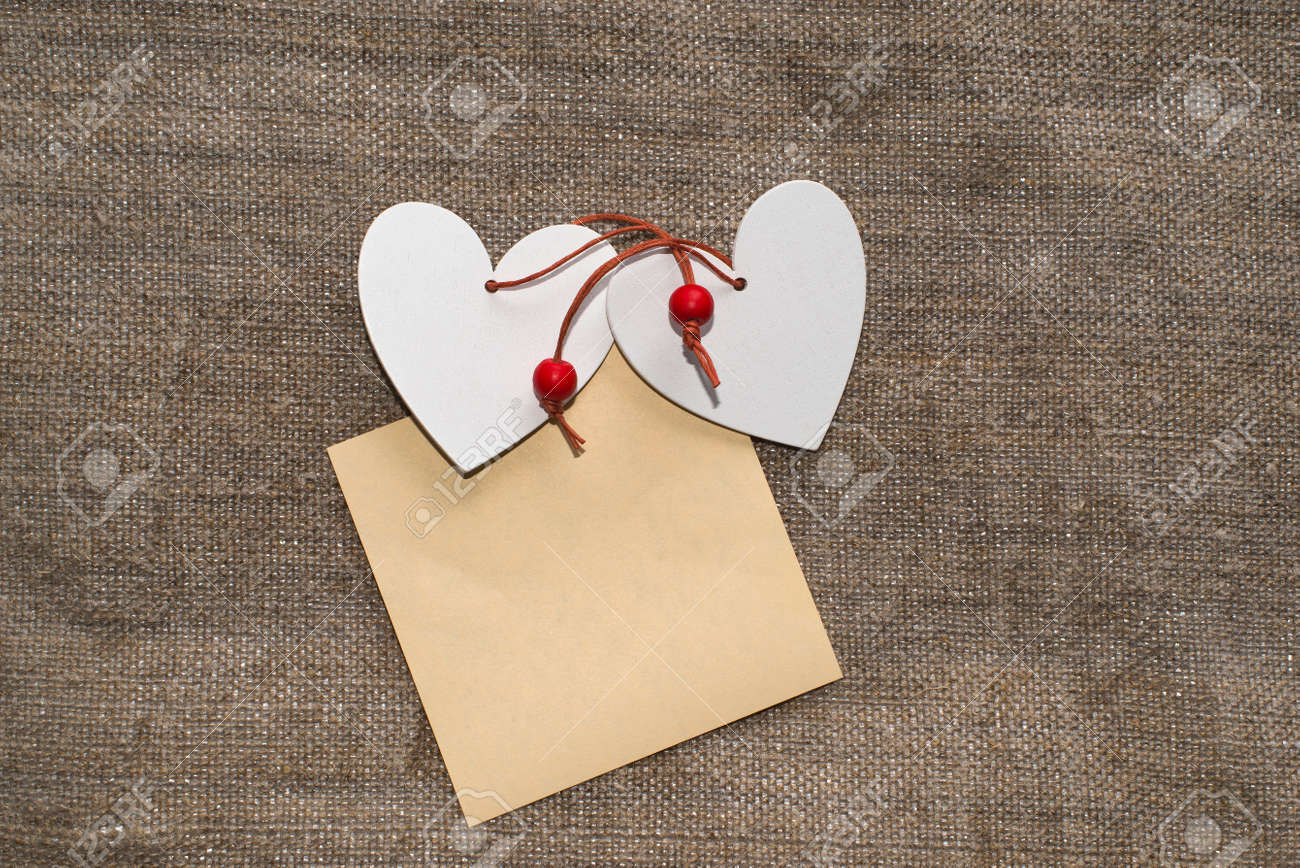 Hoja De La Cosecha Vieja De Papel Lapiz De Madera Y Dos Corazones Rojos En La Arpillera Fondo De Saco Efectos De Diseno Retro Fotos Retratos Imagenes Y Fotografia De Archivo Libres