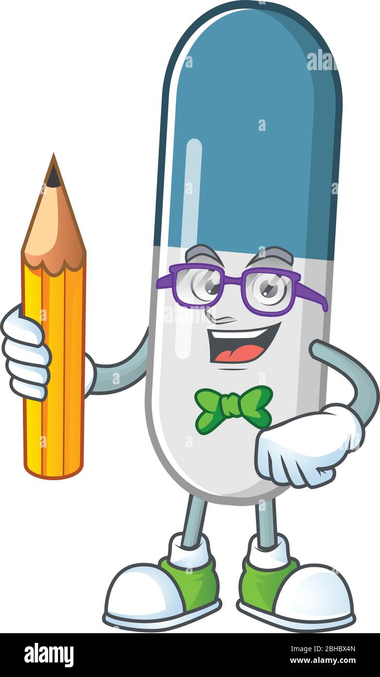 Pastillas De Vitamina Estudiante De Dibujos Animados Caracter De Estudiar Con Lapiz Imagen Vector De Stock Alamy