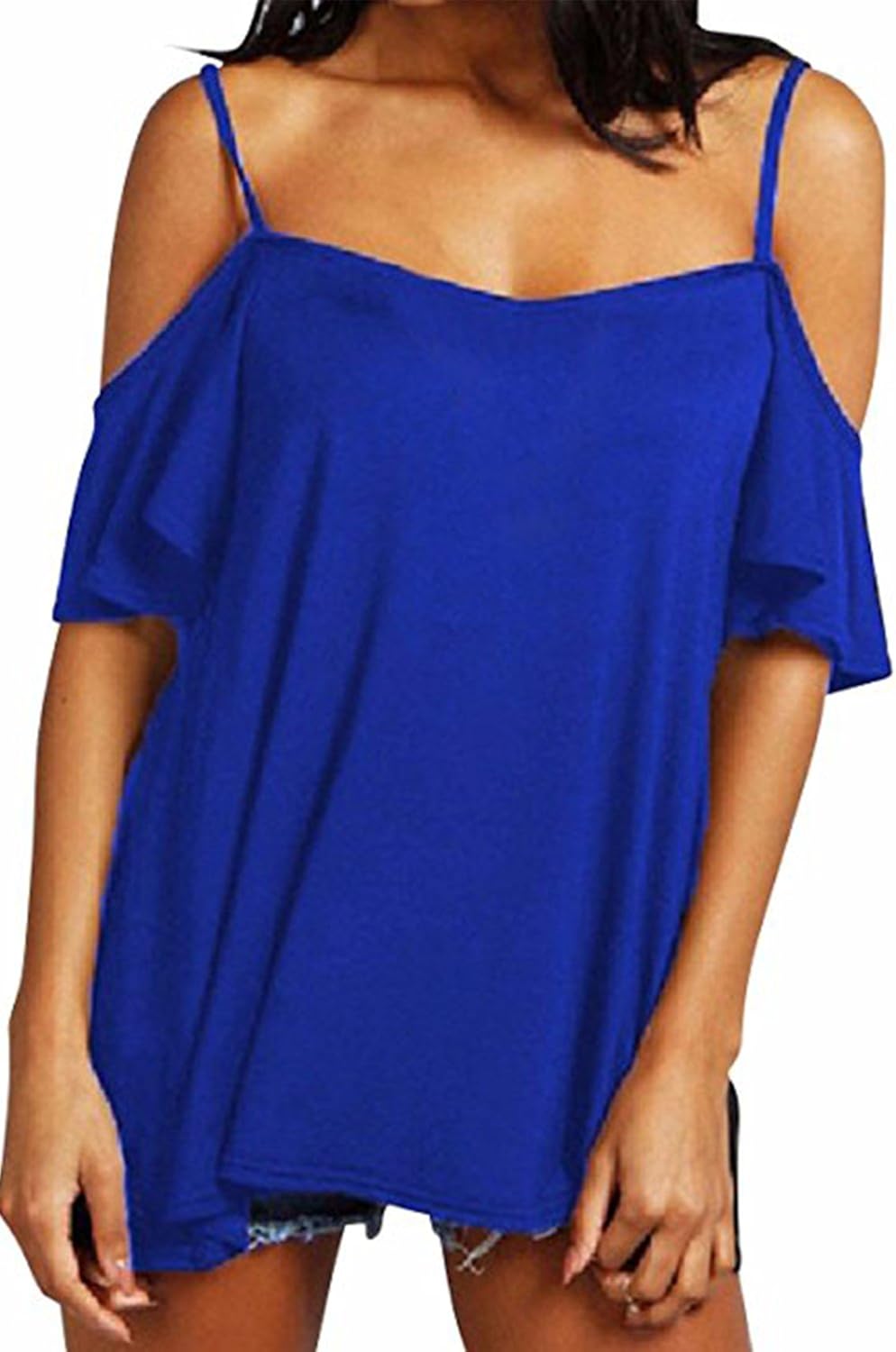 Fisoul Women S Off Shoulder Top Ruffle Sleeve Spaghetti Strap Halter Tops At Amazon Women S Clothing Store