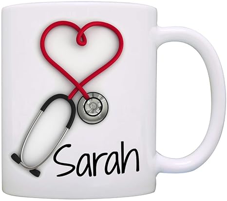 Amazon Com Personalizado Taza De Cafe Con Diseno De Estetoscopio Ideal Para Doctores Y Enfermeras Impresa En Ambos Lados Kitchen Dining