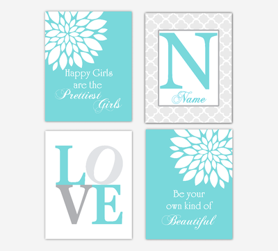 Baby Girl Nursery Art Prints Aqua Blue And Grey Nursery Wall Etsy