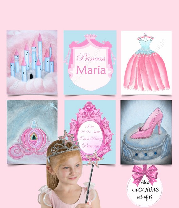 Princess Nursery Art Pink Aqua Blue Set Of 6 Art Prints Etsy