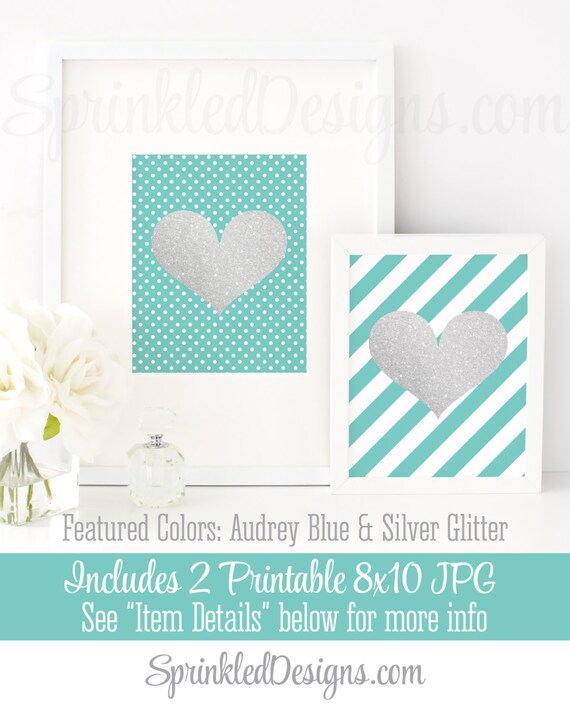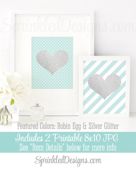 Silver Glitter Heart Robin Egg Blue Aqua Mint Set Of 2 Printable Signs Baby Girl Nursery Baby Shower Decorations Dorm Room Vanity Art By Sprinkled Designs Catch My Party