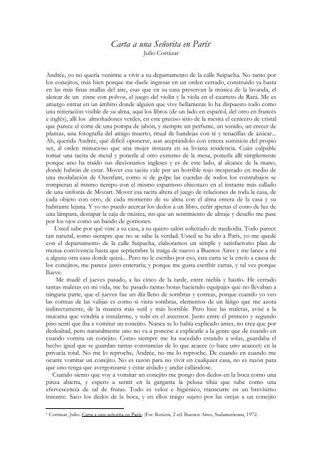Carta A Una Senorita En Paris Escritura Creativa Clara Obligado