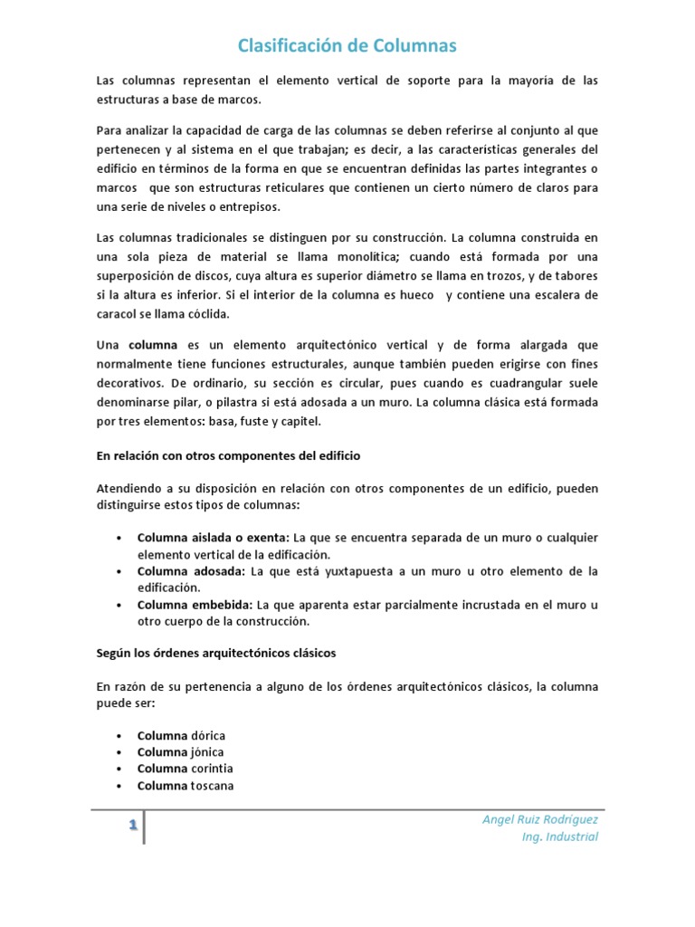 Clasificacion De Columnas Angel Ruiz Rodriguez Ing Industrial Columna Diseno Arquitectonico
