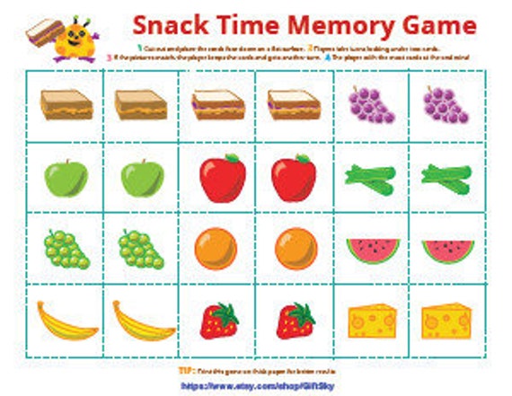 Snack Time Memory Game Children Kids Instant Download Pdf Etsy