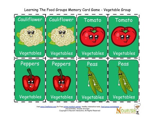 Kids Food Group Memory Game Cards Food Cards Vegetables
