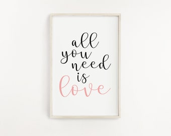 Song Lyrics Wall Art All You Need Is Love Love Actually Etsy