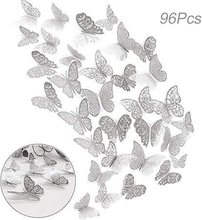 96pz Adhesivos Mariposas 3d Decorativos Para Pared Creatiees Pegatinas De Pared Mariposas Decoraciones Rxtraible Mural Pegatinas De Calcomanias Hogar Casa Habitacion Para Casa Habitacion Plata Ivonatematus