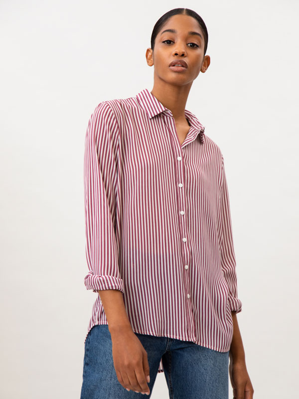 Blusa Crepe Lisa Frambuesa Camisas Blusas Mujer Promod