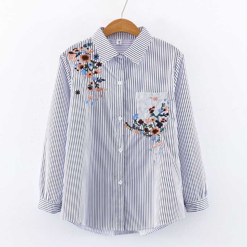 Blusas Mujer De Moda Floral Embroidery Striped Chiffon Blouse Shirt Long Sleeve Blouse Women Womens Tops And Blouses C761 From Vinana 13 58 Dhgate Com