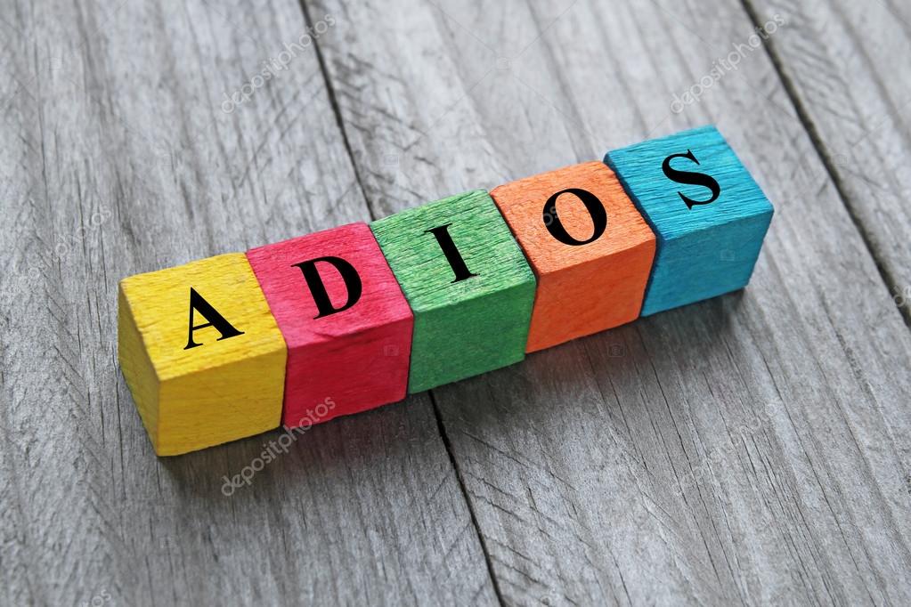 Word Adios Good Bye In Spanish On Colorful Wooden Cubes Stock Photo C Chrupka