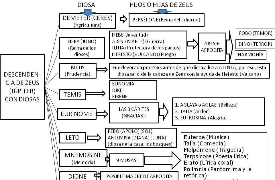 Imagen de portada Alan Perkins Artículo publicado originalmente el 30 de marzo de , actualizado el 25 de noviembre de por su relevancia y como parte de la revisión del Archivo Pijama. Zeus tuvo descendencia con más de 30 féminas de procedencia divina Citaremos a las principales y a los hijos de Zeus procedentes de estas uniones Con su legítima esposa, Hera, tuvo varios hijos Ares, dios de la guerra, Hebe diosa de juventud, Hefesto dios de la fragua del Olimpo, Ilitia, diosa de los nacimientos y Eris, diosa de la guerra, ayudante de Ares. Zeus tuvo descendencia con más de 30 féminas de procedencia divina Citaremos a las principales y a los hijos de Zeus procedentes de estas uniones Con su legítima esposa, Hera, tuvo varios hijos Ares, dios de la guerra, Hebe diosa de juventud, Hefesto dios de la fragua del Olimpo, Ilitia, diosa de los nacimientos y Eris, diosa de la guerra, ayudante de Ares.