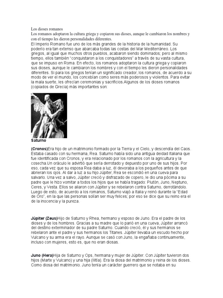 Saturno, hijo menor de Coelus y Terra, devoraba a sus propios hijos, cumpliendo así con la condición que su hermano mayor, Titán, le había impuesto para gobernar, de manera que la descendencia de Titán pudiese luego llegar al trono de soberanía sobre el resto de los dioses «Jupiter» The Oxford Classical Dictionary. Mitología Romana Saturno temiendo que alguno de sus hijos lo sacara del trono, conforme nacían los devoraba, Ops la esposa que acababa de tener otro hijo (Júpiter), para que no se lo comiera envolvió unas piedras en un pañal como si fuera el bebe, Saturno venciendo el destino se lo tragóJúpiter fue ocultado en Creta, las ninfas Amaltea, Adrastea lo cuidaron, cuenta la leyenda que. Saturno, hijo menor de Coelus y Terra, devoraba a sus propios hijos, cumpliendo así con la condición que su hermano mayor, Titán, le había impuesto para gobernar, de manera que la descendencia de Titán pudiese luego llegar al trono de soberanía sobre el resto de los dioses «Jupiter» The Oxford Classical Dictionary.