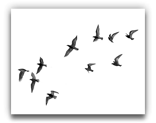 Amazon Com Abstract Watercolor Flock Of Birds In Flight Gray Black And White Wall Decor 14x11 Unframed Minimalist Modern Scandinavian Neutral Wall Art Print Handmade