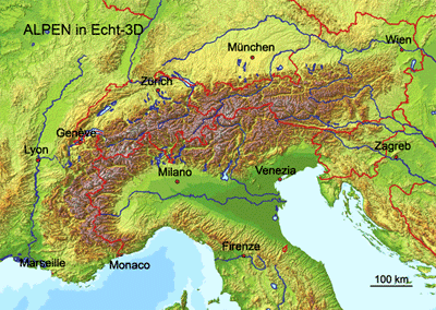Mapa Fisico Alpes Italia Francia Suiza Austria Sold Through Direct Sale