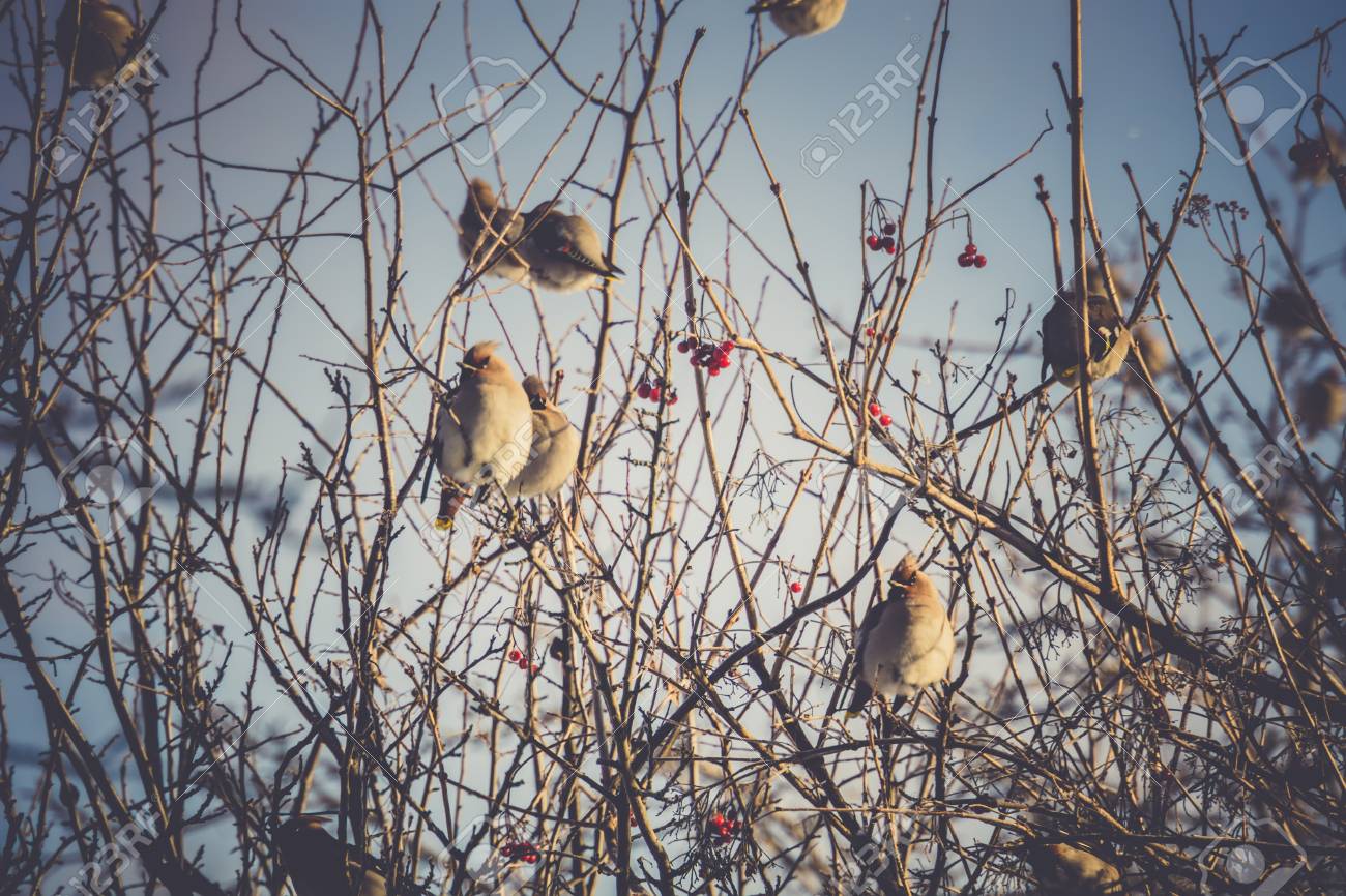 Pajaros Hambrientos De Alas De Cera Sentados En Las Ramas De Los Arboles Esmerilados Filtrados Fotos Retratos Imagenes Y Fotografia De Archivo Libres De Derecho Image