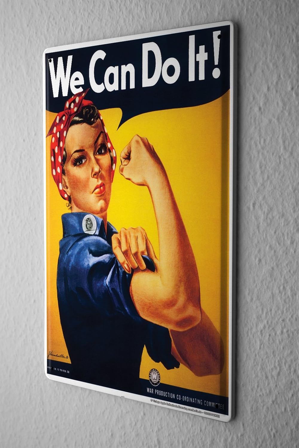 We Can Do It Ww2 Segunda Guerra Mundial Land Chicas Poster Reclutamiento Morale Retro Vintage Woman En Funcionan Ropa Cabeza Bufanda Musculos Metal Cartel De Acero Para Pared 9 X 6 5 Cm