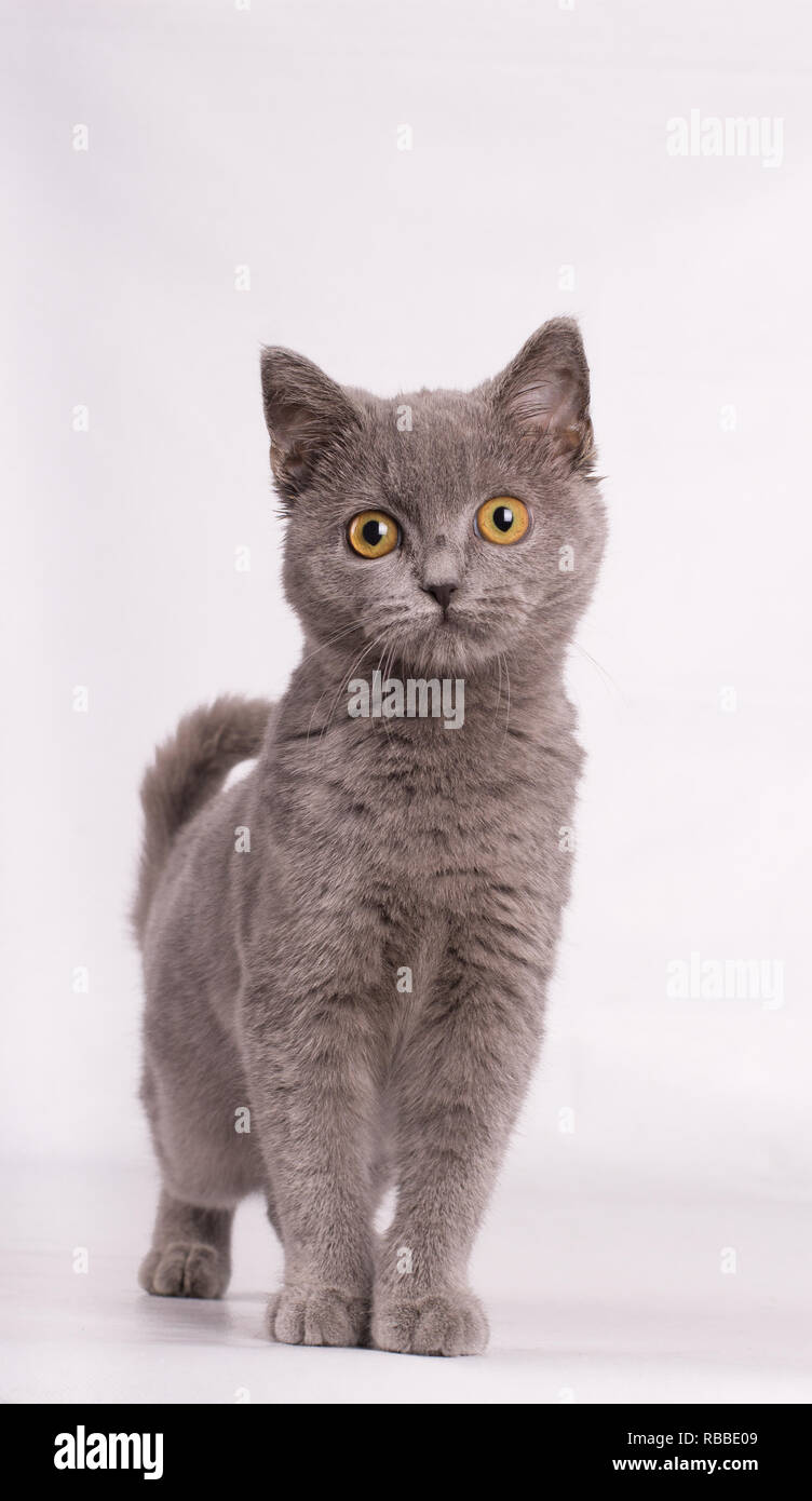 Blue British Shorthair Kitten Standing Stock Photo Alamy