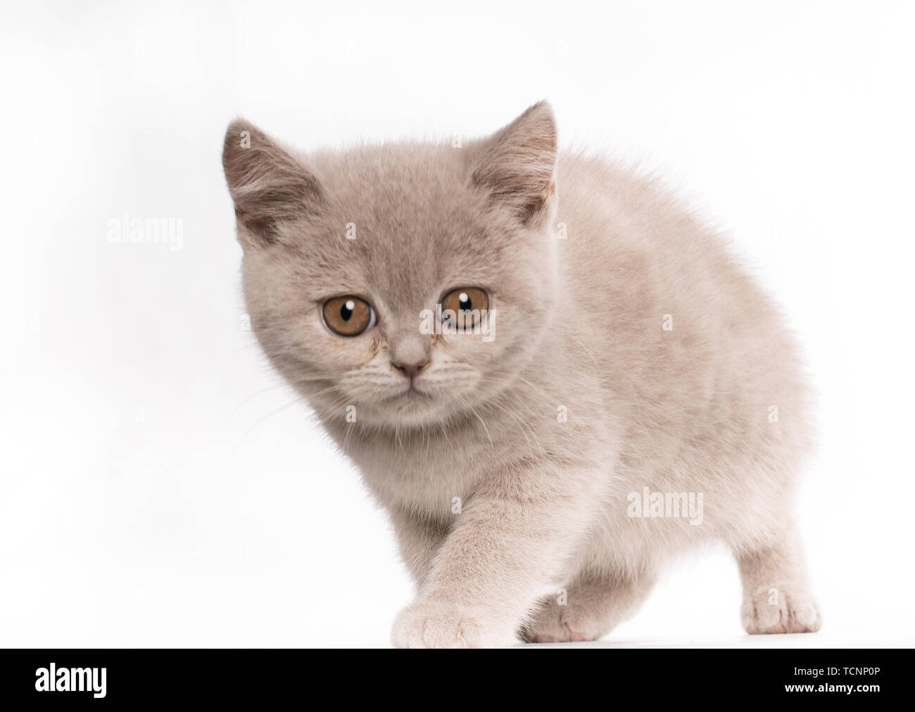Portrait Of Blue British Baby Cat In Front Of White Backgrwond Stock Photo Alamy