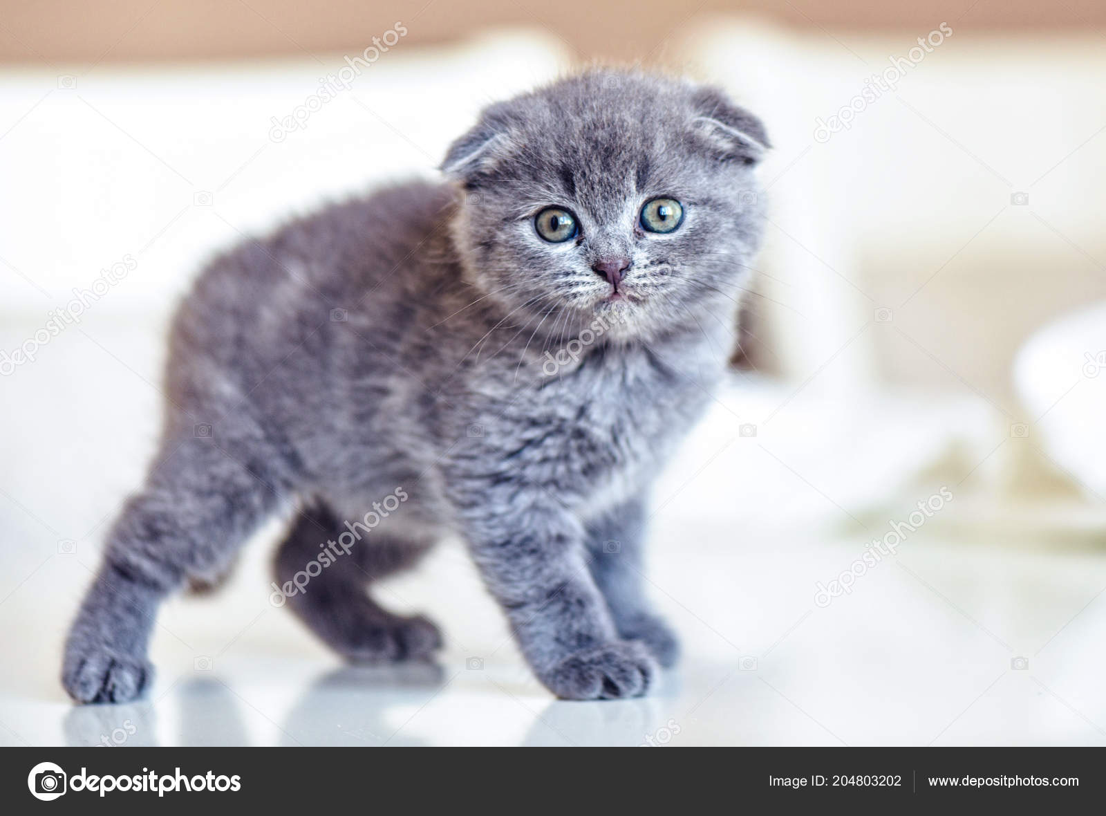 Scottish Fold Baby Cat Walking Table Looking Camera Place Text Stock Photo C Frimufilms