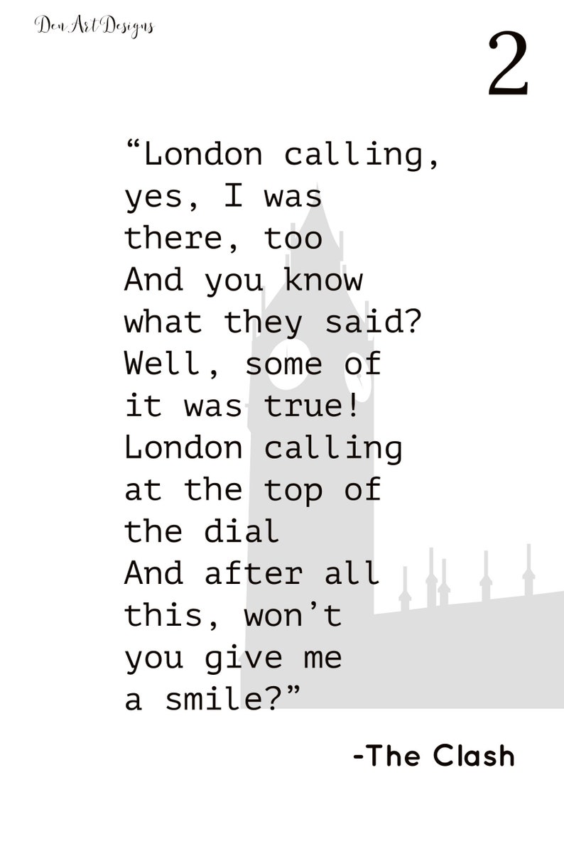 The Clash Inspired London Calling Lyrics Print Home Decor Etsy