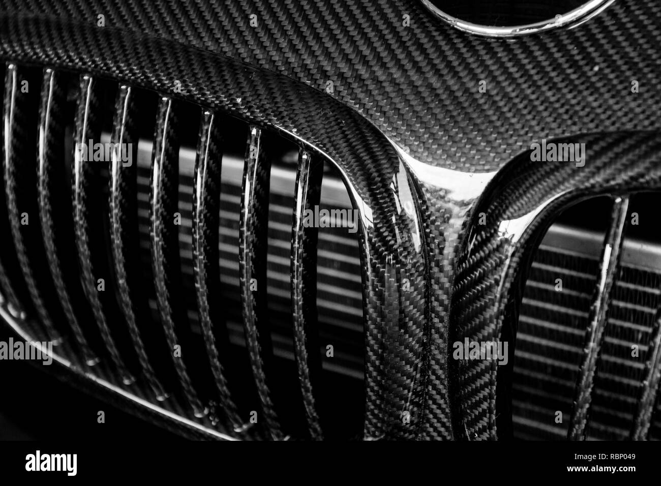Detalles De La Rejilla De Fibra De Carbono De Coche Deportivo En Blanco Y Negro Fotografia De Stock Alamy