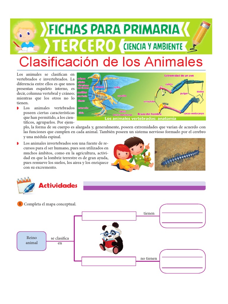 Clasificacion De Los Animales Para Tercero De Primaria Vertebrados Invertebrado
