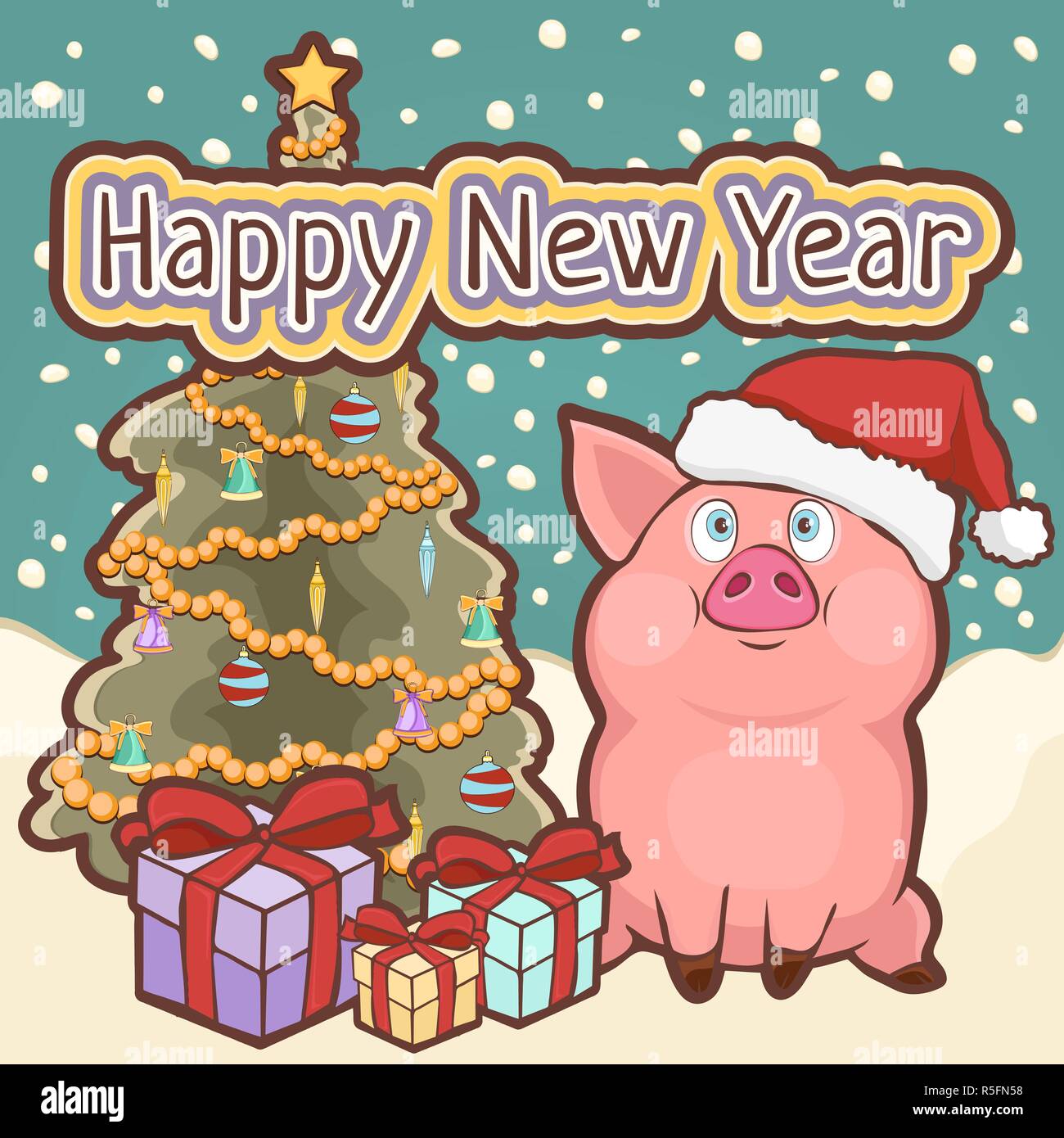 Feliz Ano Nuevo Bonita Ilustracion Vectorial Con Lechon Gracioso Feliz Navidad Y Feliz Ano Nuevo Vector Lindo Ilustracion Canstock