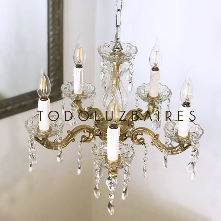 Arana De 5 Luces De Bronce Fundicion Dorada Opcional Cromada Platil Plata Vieja Negra Blanca