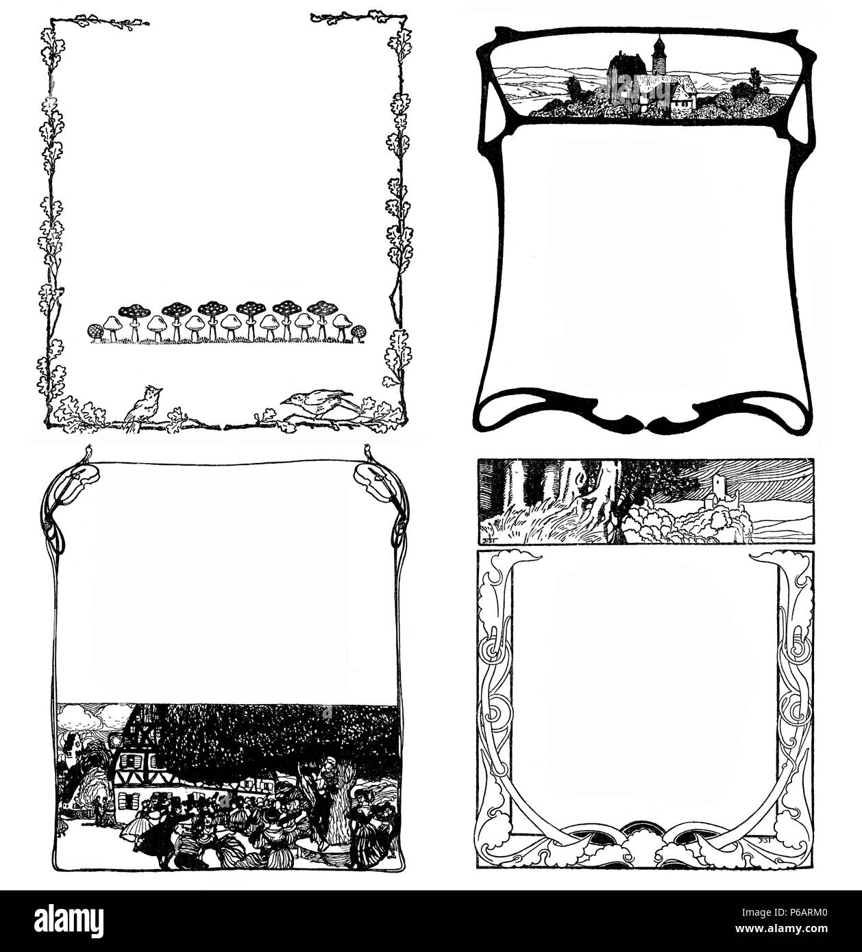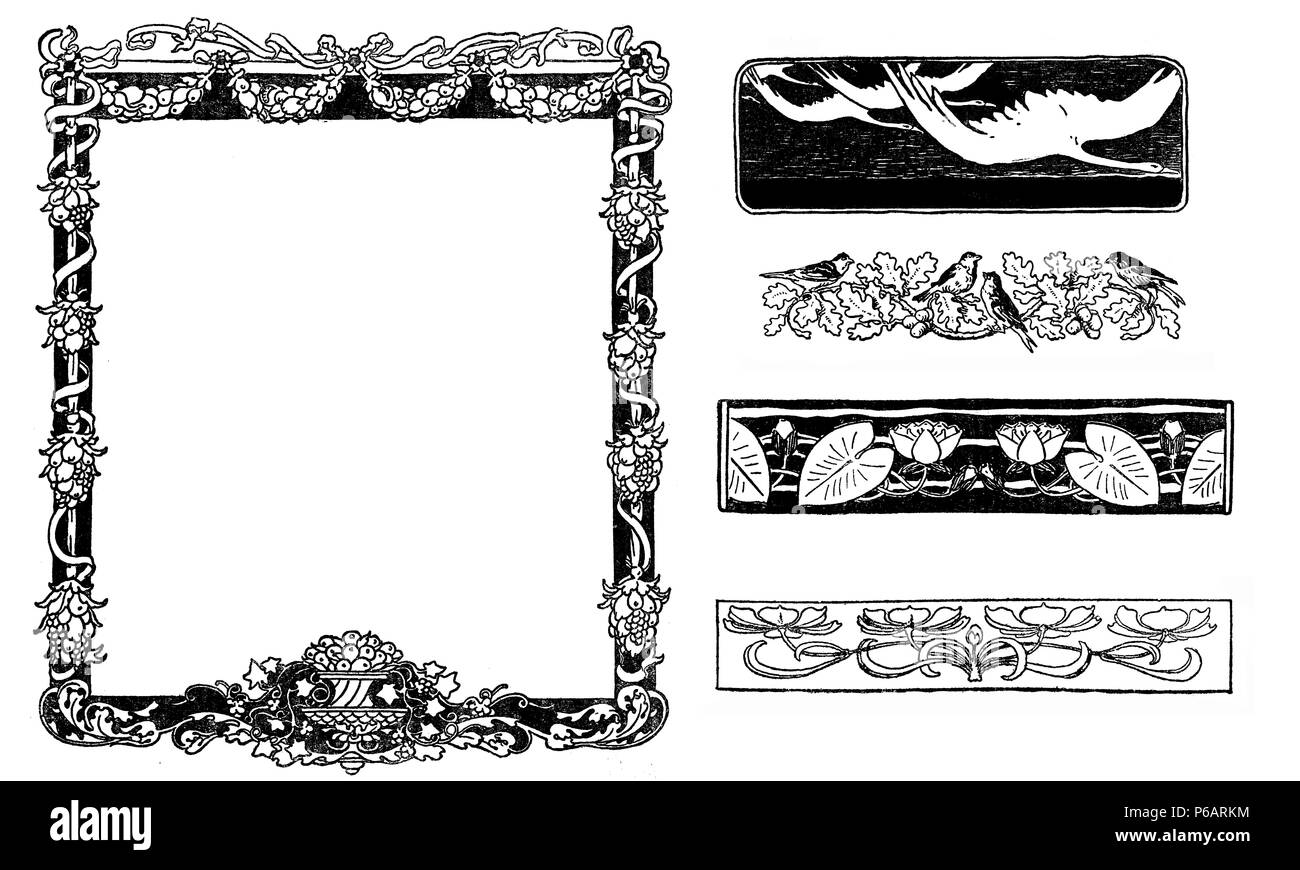 Elementos Art Deco Decorativos Tipograficos A Principios De Los 900 4 Marcos Florales Estilizados Con Paisajes Hojas Ave La Naturaleza Simbolos Como Capitulo Decoraciones Vinetas Y Plantillas Fotografia De Stock Alamy