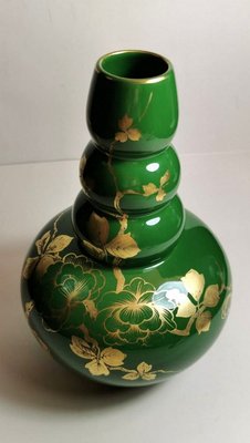 Jarron Art Deco De Terracota Esmaltada En Verde Con Decoraciones De Oro Puro De Sainte Radegonde 1949 En Venta En Pamono