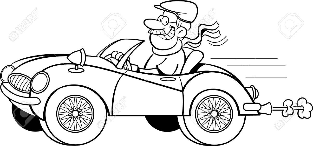 Ejemplo Blanco Y Negro De Un Hombre Que Conducia Un Coche Deportivo Ilustraciones Vectoriales Clip Art Vectorizado Libre De Derechos Image