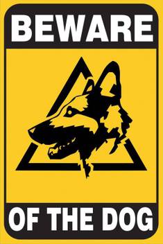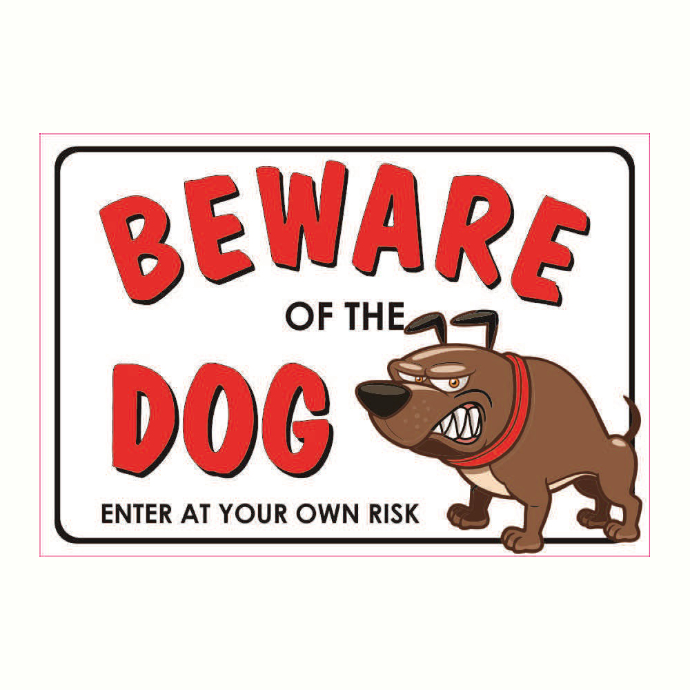 Beware of the dog (also rendered as Beware of dog) is a warning sign indicating that a dangerous dog is within Such signs may be placed to deter burglary even if there is no dog.