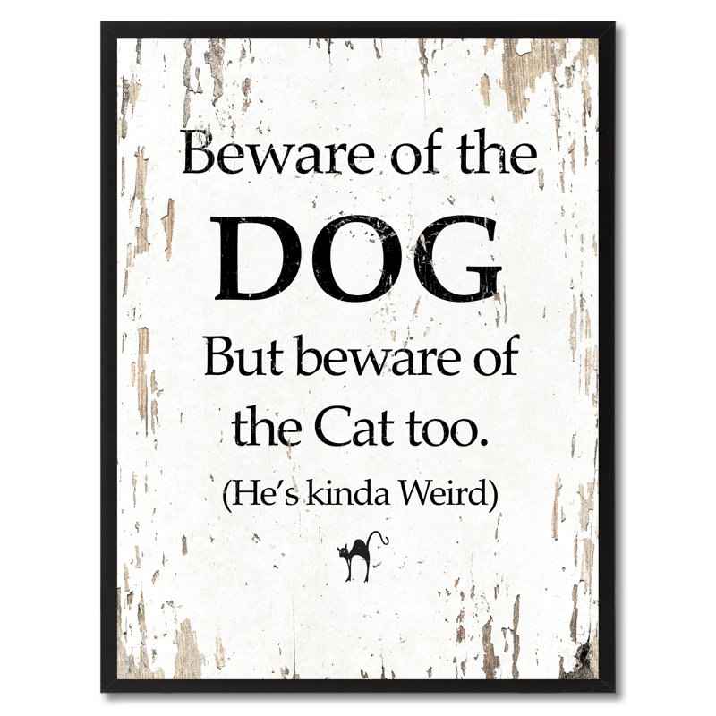 Tucker Murphy Pet Beware Of The Dog But Beware Of The Cat Too Hes Kinda Weird Picture Frame Textual Art Print On Canvas Wayfair