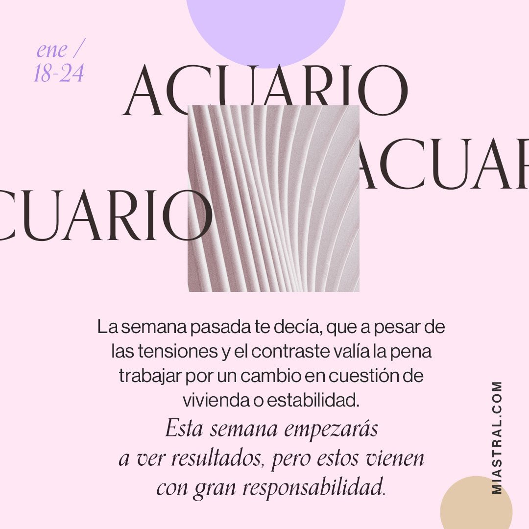 Acuario, ¿viene una semana dura y no sabes cómo afrontarla?. (c) ruth nací y vivo en méxico hola angela me llamo ruth y soy acuario espero que estes bien, solo quisiera saber cuanto tiempo tiene que pasar para que se den todas las cosas que me dices en la lectura del tarot pues yo lo veo todos los dias,y cada semana,disculpa que te moleste en esta duda y espero tu respuesta con muchas ansias y buenas vibras para mi, te mando mil bendiciones y. Esta semana habrá que estar fuerte para soportar la presión que esta energía ejerce sobre nosotros Horóscopo de Acuario para esta semana ( de enero al 19 de febrero).