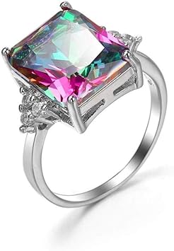 Daesar Anillo Compromiso Mujer Barato Chapado En Plata Anillo Plata Rectagular Circonita Negro Amazon Es Joyeria