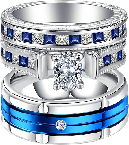 Epinki Anillos De Pareja Circonita Forma Ovalada Azul Plata Anillos De Compromiso Mujer Talla Mujer 17 Hombre 25 Amazon Es Joyeria