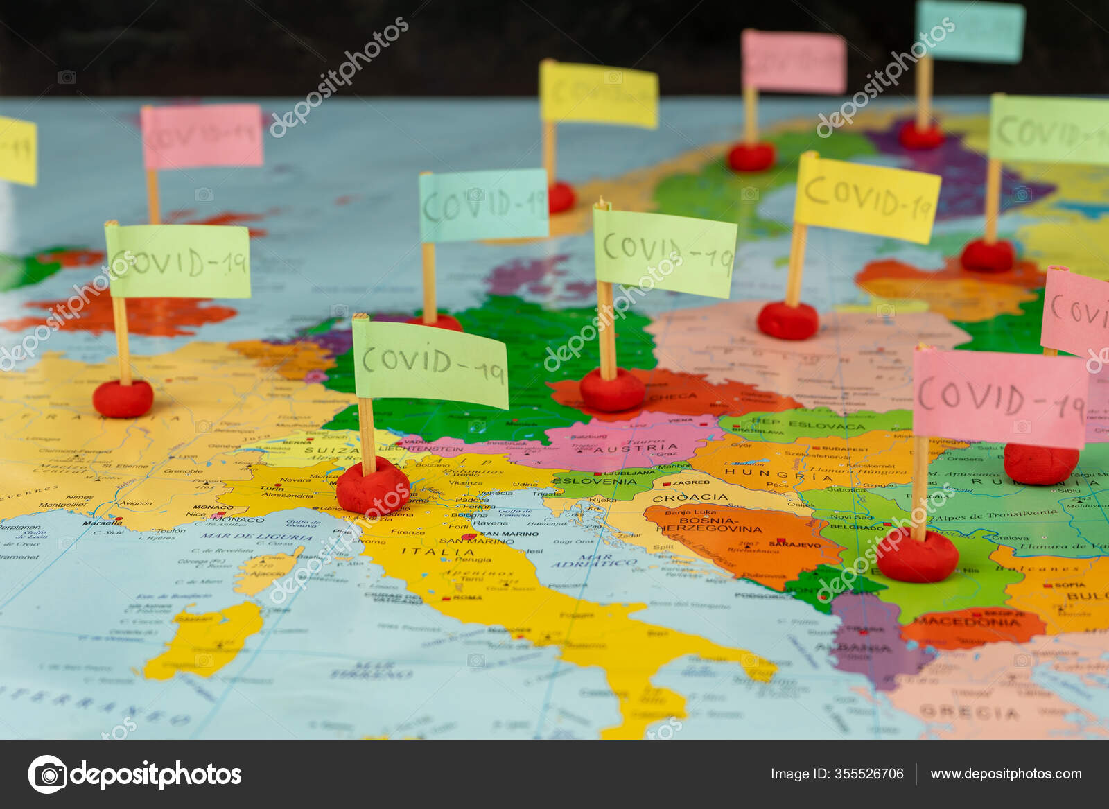 Mapa Europa Com Pequenas Bandeiras Covid Conceito Propagacao Virus Stock Photo C Barriolo