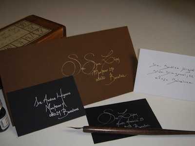 Invitaciones de boda elegantes Hoy en día abundan las alternativas en bodas, sobretodo porque están muy de moda las bodas temáticas, es decir, aquellas en que los novios eligen un tema para vestirse o bien para decorar. Y siempre quedan muy originales con todo tipo de invitaciones Por ejemplo, si la tarjeta de la boda es tipo entrada de concierto, el sobre forrado debería tener una temática musical O si has elegido un billete de avión para invitar a tu boda, el interior del sobre puede estar diseñado con un mapa. Tarjeta para Poner el Nombre de los Invitados en el Sobre de las Invitaciones Un complemento de Decoración de los Sobres de la Boda.